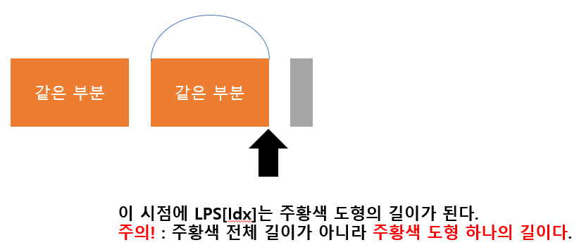 - 이 시점에서 LPS[Idx]는 주황색 도형 하나의 길이가 된다.