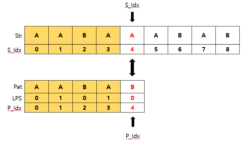 - P_index는 기존에 4였기 때문에 LPS[4 - 1]로 P_index는 1이 되는 것이다.
